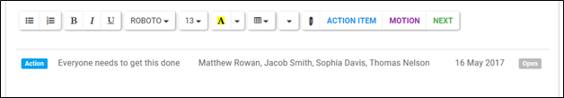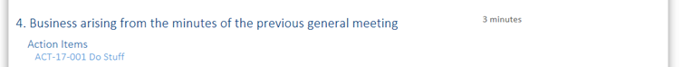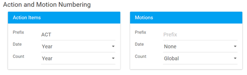 You now have the flexibility for numbering action items and motions to allow easy identification across meetings and the organization. It is composed of up to three parts Prefix-Date-Count: