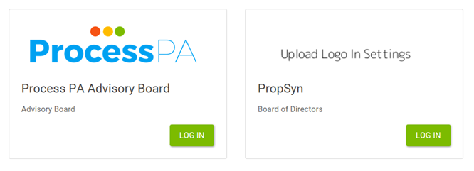 For those who are members of multiple committees or boards on login to Process PA you are presented with the list of organizations you are a member of. You now have the ability to set the logo for your organization or committee. This is uploaded in settings and if you have not uploaded your logo you will see the message to upload in place of your logo.