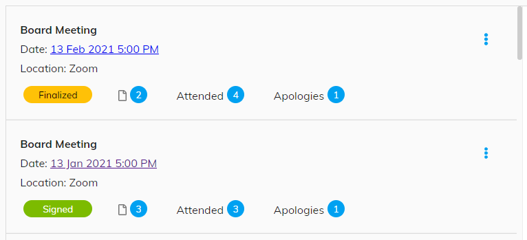To highlight Signed status of minutes we have adjusted Finalised to show an Amber status and Signed in Green.