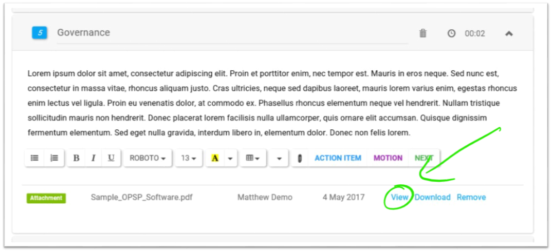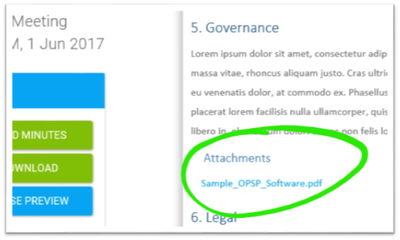 Within the preview for Agenda and Minutes the attachments are now links to allow online viewing with the new online document and attachment viewing.