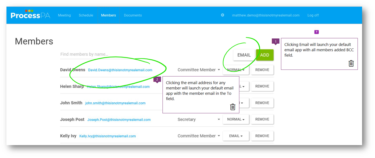 Note: This is only available to members with Administrator access as no emails are shown for Normal or Email Only access members.