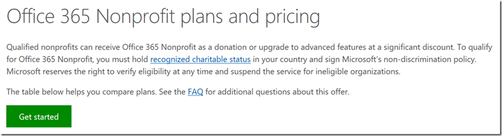 - Go to Nonprofit plans and pricing page, https://products.office.com/en-au/nonprofit/office-365-nonprofit-plans-and-pricing.