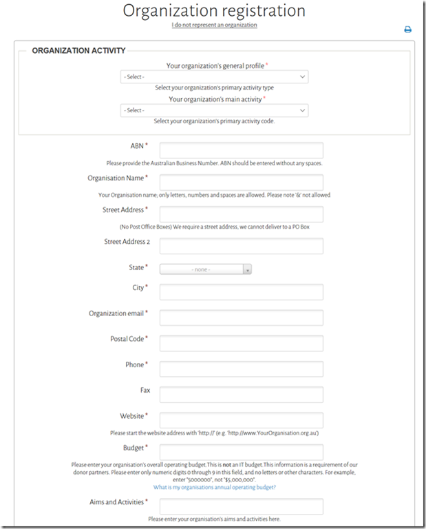 Currently we do not have any evidence of your organisation’s charitable or not-for-profit status because it is not reflected on the Australian Business Register http://abr.business.gov.au/SearchByAbn.aspx?SearchText=55781012322 It is a core requirement for the program that organisations are income tax exempt, you must fill out and return to us a self-assessing review worksheet for income tax exempt not-for-profits, which can be downloaded here: http://www.ato.gov.au/Forms/Income-tax-status-review-worksheet-for-self-assessing-non-profit-organisations/