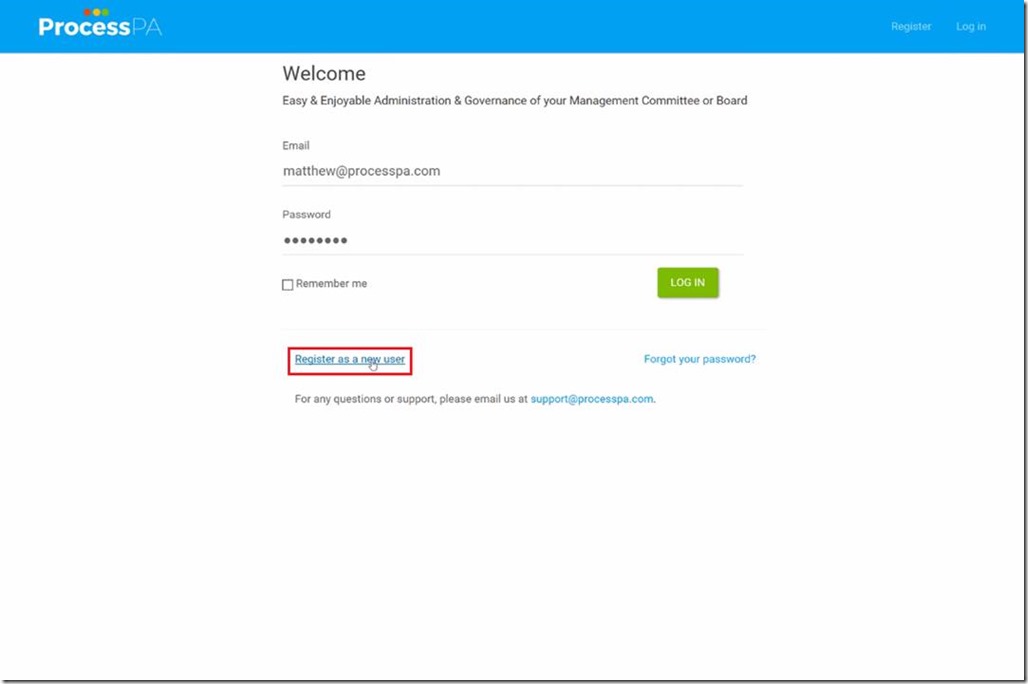 - Once you are directed to the log in page, click the “Register as a new user” option.
