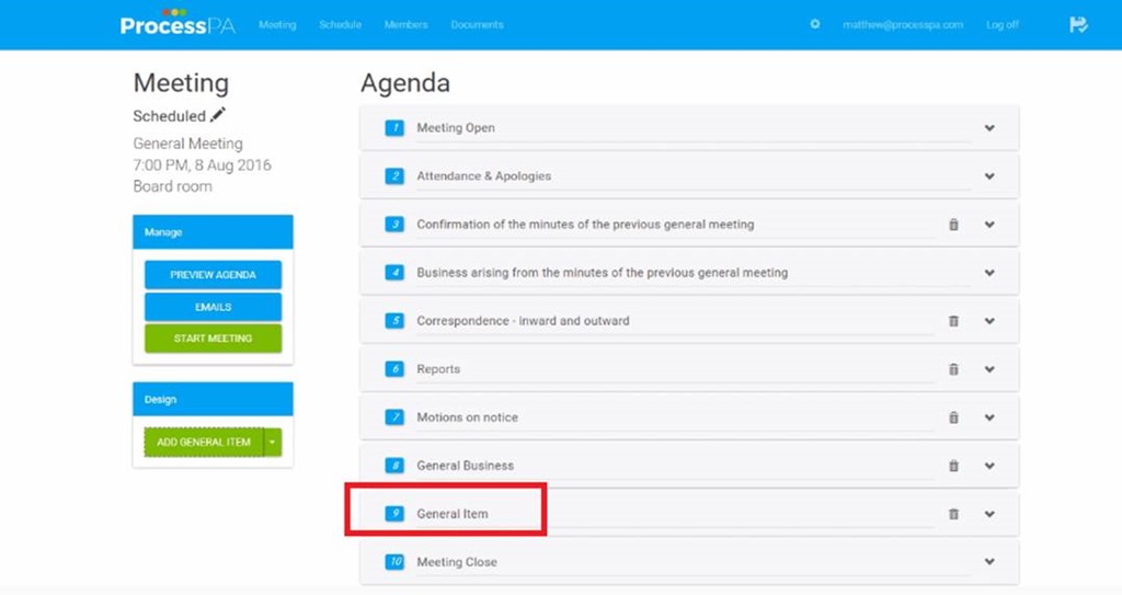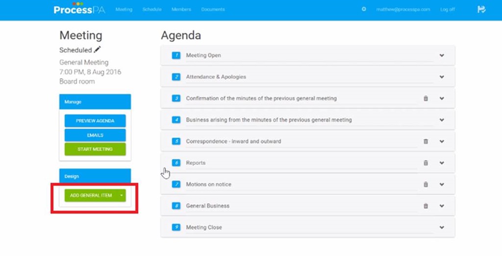 This video will show you how to adjust the agenda - adding items, naming items and dragging to change the order of the items. For step by step instructions, refer to below the video.